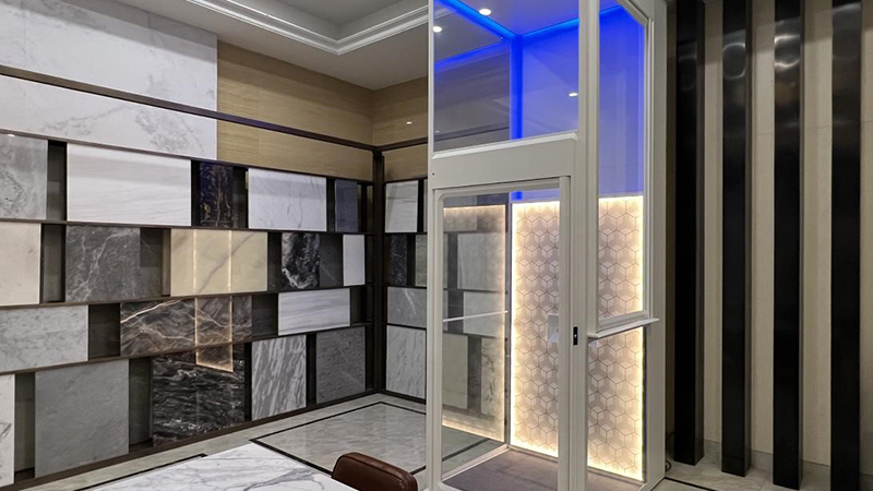 螺杆电梯因其自带玻璃观光井道,不需要预挖底坑可平地安装。区别于传统曳引电梯,有轿厢有对重占用相当大的空间。Housty亨世达螺杆电梯最小型号仅预留尺寸935mm×1011mm即可安装,平台可使用尺寸达到600mm×835mm,载重250Kg,空间使用率高,相当节省家庭空间。